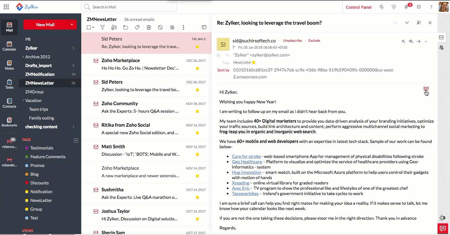Unlike Gmail, which shows ads, Zoho Mail guarantees an ad-free experience.